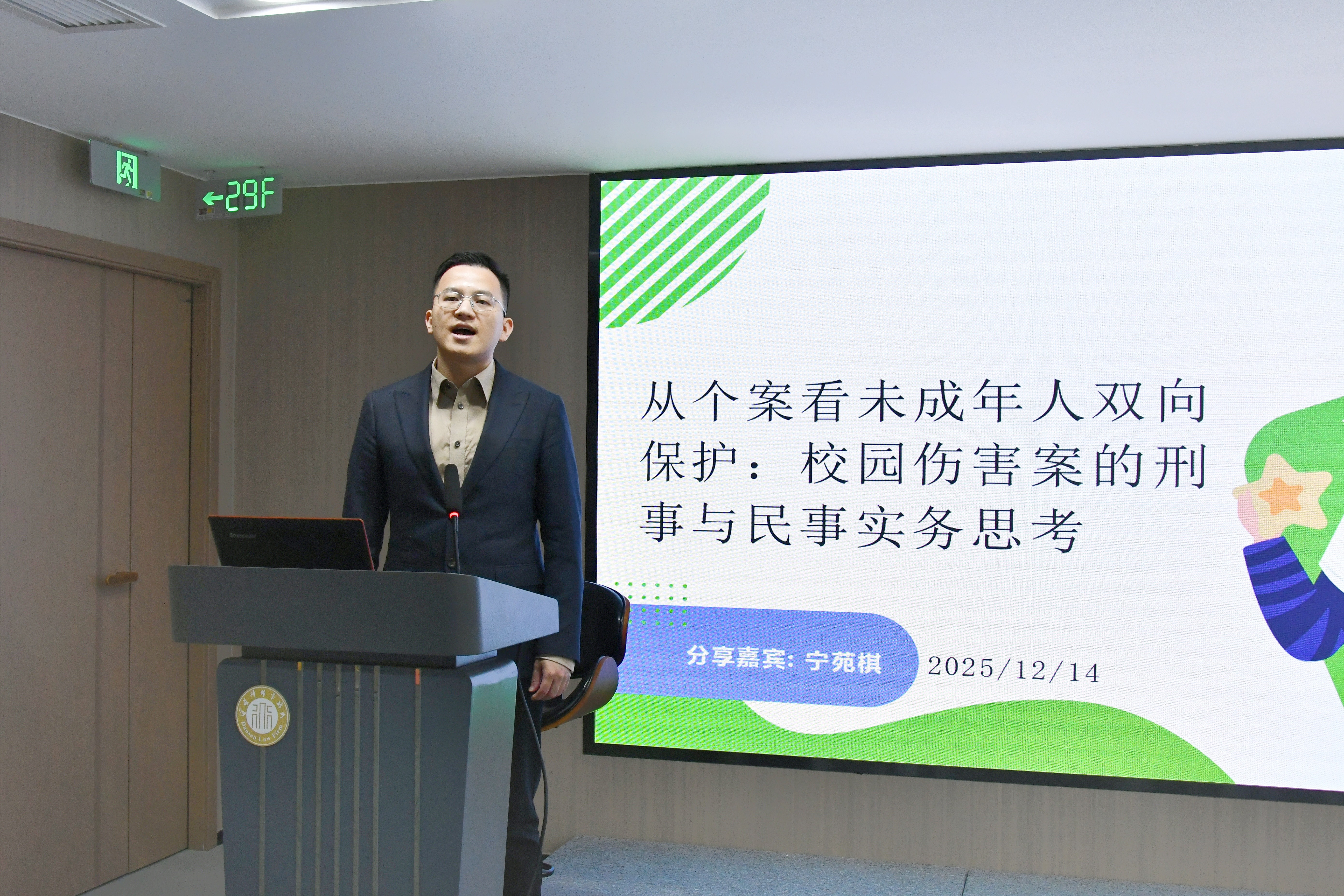 寧苑棋律師作了《從個(gè)案看未成年人雙向保護(hù):校園傷害案的刑事與民事實(shí)務(wù)思考》的主題分享。他結(jié)合自己親辦的校園傷害案件,從刑事和民事兩個(gè)維度深入剖析了未成年人雙向保護(hù)的重要性。在刑事方面,詳細(xì)闡述了校園傷害案件中犯罪構(gòu)成要件的認(rèn)定、量刑情節(jié)的考量以及辯護(hù)策略的選擇;在民事方面,著重分析了侵權(quán)責(zé)任主體、賠償范圍和賠償標(biāo)準(zhǔn)的確定等問(wèn)題。寧律師強(qiáng)調(diào),在處理校園傷害案件時(shí),要兼顧未成年犯罪嫌疑人和未成年被害人的合法權(quán)益,實(shí)現(xiàn)雙向保護(hù),既要幫助未成年犯罪嫌疑人改過(guò)自新、回歸社會(huì),又要保障未成年被害人的損失得到合理賠償、心理得到及時(shí)撫慰。通過(guò)實(shí)際案例的分享,為與會(huì)律師處理類(lèi)似案件提供了寶貴的經(jīng)驗(yàn)和思路。