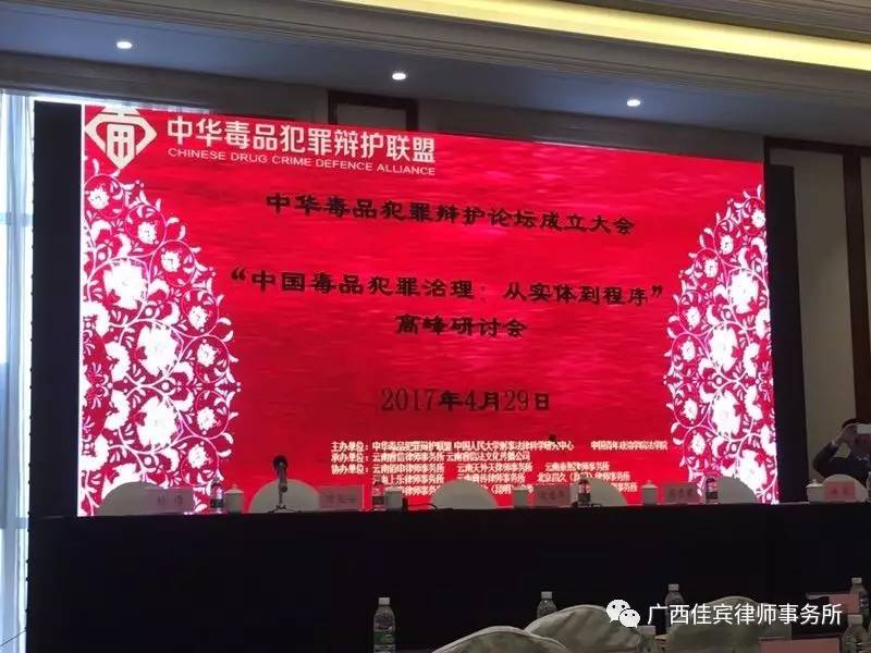 2017年4月29日至4月30日,由中華毒品犯罪辯護聯(lián)盟、中國人民大學刑事科學研究中心、中國青年政治學院法學院等單位主辦的首屆中華毒品犯罪辯護論壇成立大會暨“中國毒品犯罪治理:從實體到程序”高峰研討會在云南“春城”昆明召開。來自全國34個省(自治區(qū)、直轄市)及越南、緬甸等國家和地區(qū)的近300名毒品辯護專家學者出席了研討會。廣西佳賓律師事務所主任王小兵律師攜副主任鄧桂華律師、實習律師黃冰聰應邀出席了此次研討會。會上,我所主任王小兵律師受聘擔任毒辯聯(lián)盟廣西分部秘書長。