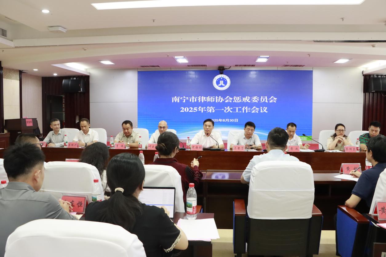 為推進懲戒委員會相關(guān)工作,南寧市律師協(xié)會于2025年8月30日在南寧市司法局召開懲戒委員會2025年第一次工作會議。南寧市律師協(xié)會會長周海船、監(jiān)事長石登崇、副會長葉大禧及懲戒委員會全體委員參加會議。會議由懲戒委員會主任蔣政主持。
