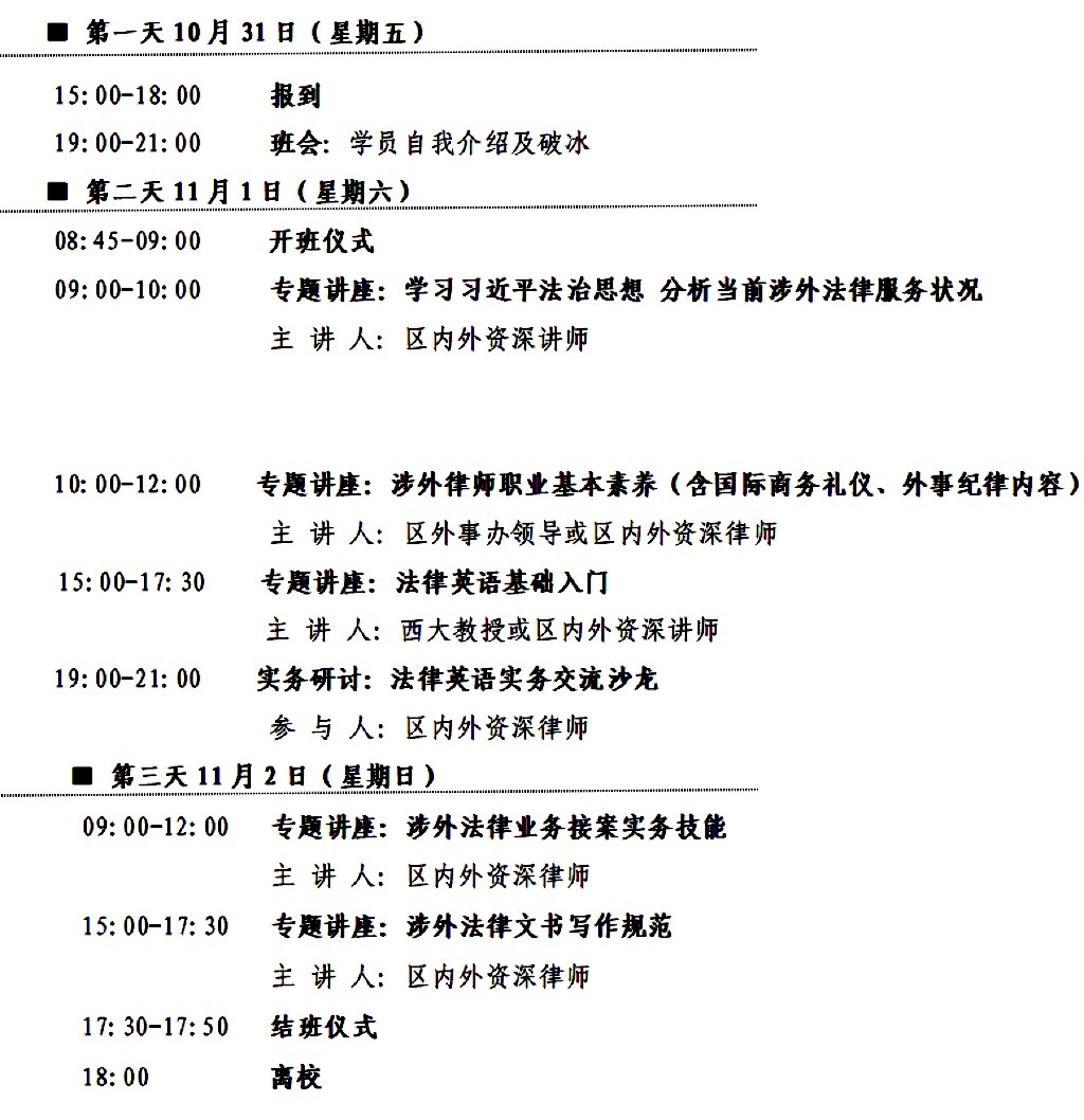 本次培訓(xùn)規(guī)模為100人,突出理論與實(shí)務(wù)緊密結(jié)合,邀請(qǐng)粵港澳灣區(qū)資深律師進(jìn)行涉外法律實(shí)務(wù)授課。參加本次培訓(xùn)班并取得結(jié)業(yè)證的律師,在同等條件下將優(yōu)先入選廣西涉外法律服務(wù)律師初級(jí)人才庫(kù)。