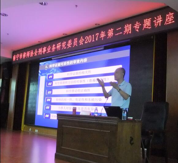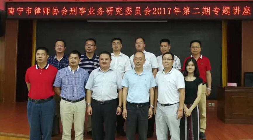 2017年9月23日上午,南寧市律協刑事業(yè)務研究委員會在南寧市司法局會議室舉辦2017年第二期專題講座。佳賓所主任王小兵律師、鄧桂華律師、梁瑞迎律師以及實習律師黃冰聰參加了此次講座。