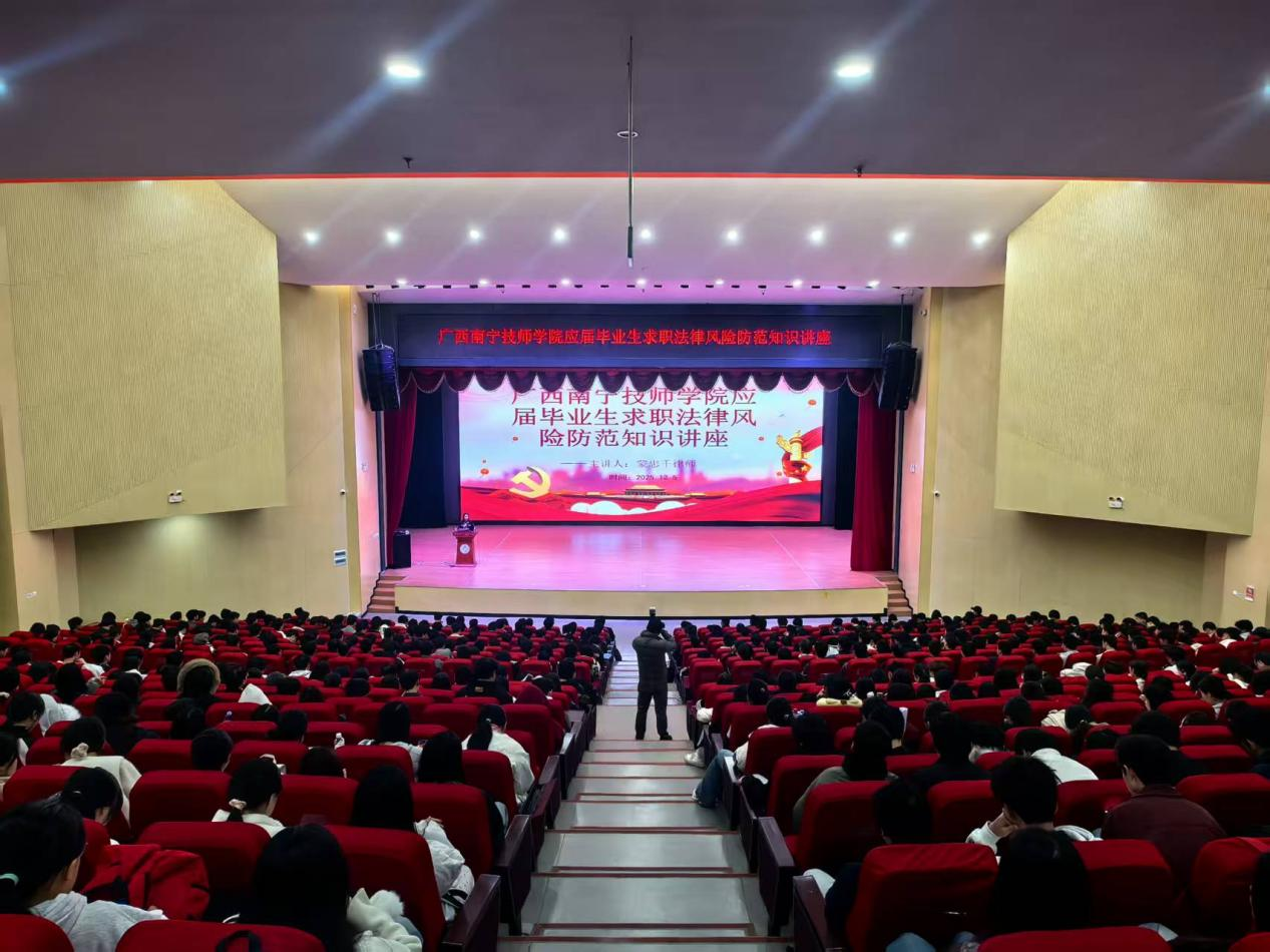 2025年12月5日下午,南寧市律師協(xié)會(huì)聯(lián)合廣西南寧技師學(xué)院在學(xué)院學(xué)生活動(dòng)中心成功舉辦畢業(yè)生求職法律風(fēng)險(xiǎn)防范專(zhuān)題公益普法活動(dòng)。南寧市律師協(xié)會(huì)副會(huì)長(zhǎng)滕黃鐵、勞動(dòng)與社會(huì)保障法專(zhuān)業(yè)委員會(huì)主任張圓媛、勞動(dòng)與社會(huì)保障法專(zhuān)業(yè)委員會(huì)副主任蒙忠千及委員代表,學(xué)院領(lǐng)導(dǎo)和師生代表共1000余人參與本次活動(dòng)。