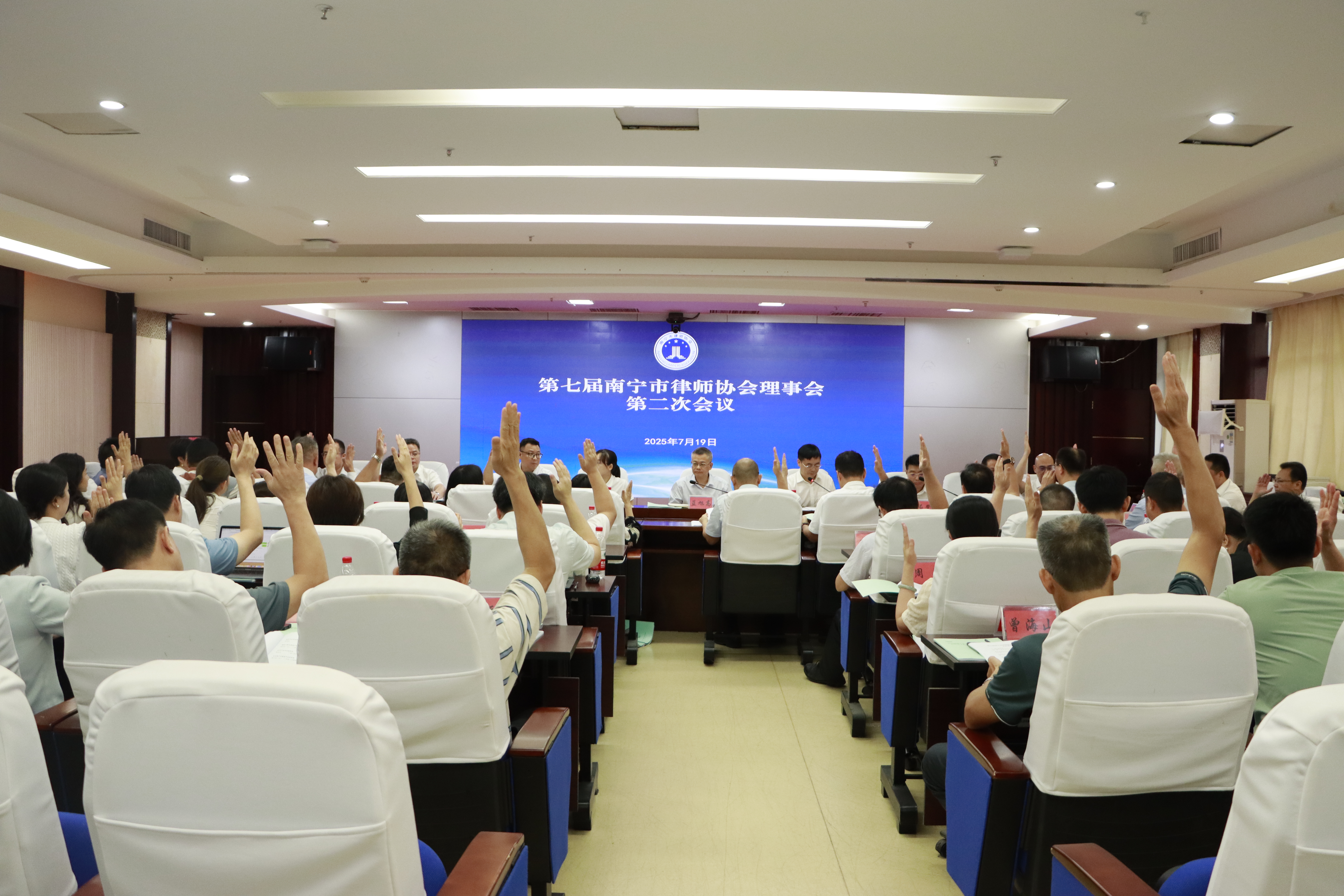 2025年7月19日,第七屆南寧市律師協(xié)會(huì)理事會(huì)第二次會(huì)議在南寧市司法局會(huì)議室順利召開。南寧市司法局副局長藍(lán)旭高、南寧市司法局律師工作科科長、南寧市律師行業(yè)黨委副書記王甜甜出席會(huì)議。第七屆南寧市律師協(xié)會(huì)理事共57人參加會(huì)議。南寧市律師協(xié)會(huì)監(jiān)事長石登崇、秘書長韋殿官、副監(jiān)事長王小兵及監(jiān)事列席會(huì)議。會(huì)議由南寧市律師行業(yè)黨委副書記、南寧市律師協(xié)會(huì)會(huì)長周海船主持。