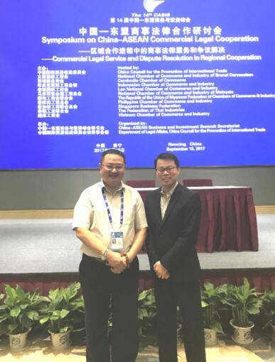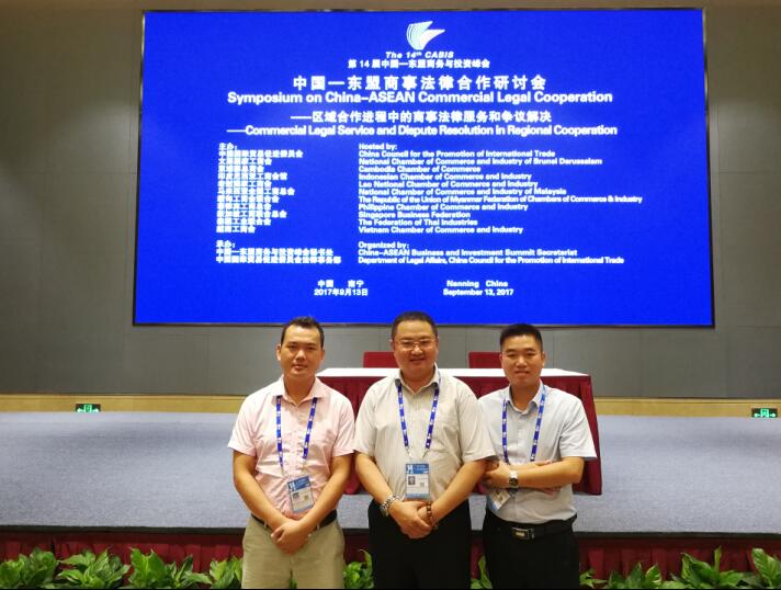 2017年9月13日上午,由中國國際貿(mào)易促進(jìn)委員會、東盟10國國家工商會主辦,中國—東盟商務(wù)與投資峰會秘書處、中國國際貿(mào)易促進(jìn)委員會法律事務(wù)部承辦的“中國—東盟商事法律合作研討會”在南寧市荔園飯店宴會廳舉行。佳賓所主任王小兵律師、鄧桂華律師、梁瑞迎律師以及黃雪律師應(yīng)邀參加此次研討會。
